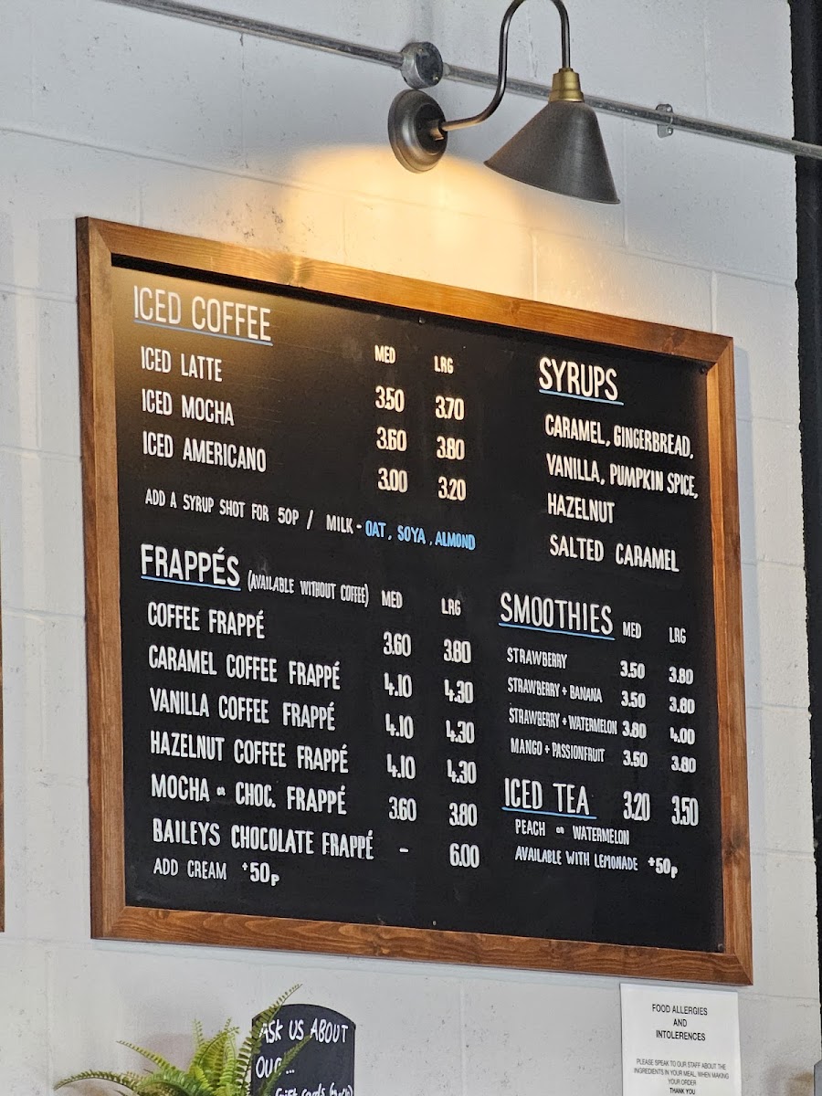 Highlights like the perfectly balanced Cortado and refreshing iced lattes provide approachable choices for both morning routines and relaxed afternoon breaks. Alongside these, a selection of frappés and syrup options such as caramel and hazelnut offer a little extra flavour for those looking to mix things up.